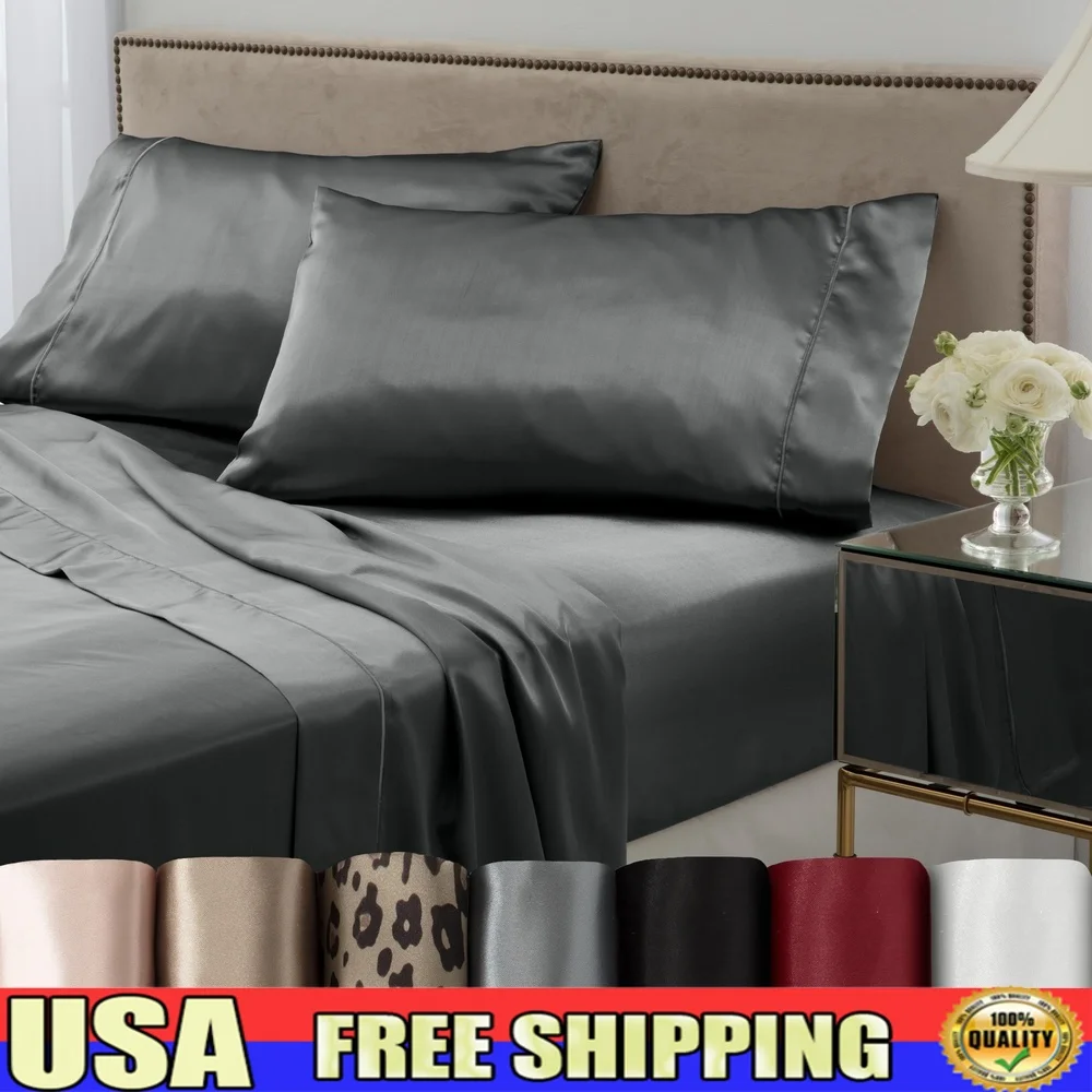 These soft and affordably luxurious satin faux silk sheets are cool to the touch. An elasticized fitted sheet offers a snug fit on your mattresses. Offering a lustrous sheen and easy care properties, this sheet set is a refined touch for your best nights sp.