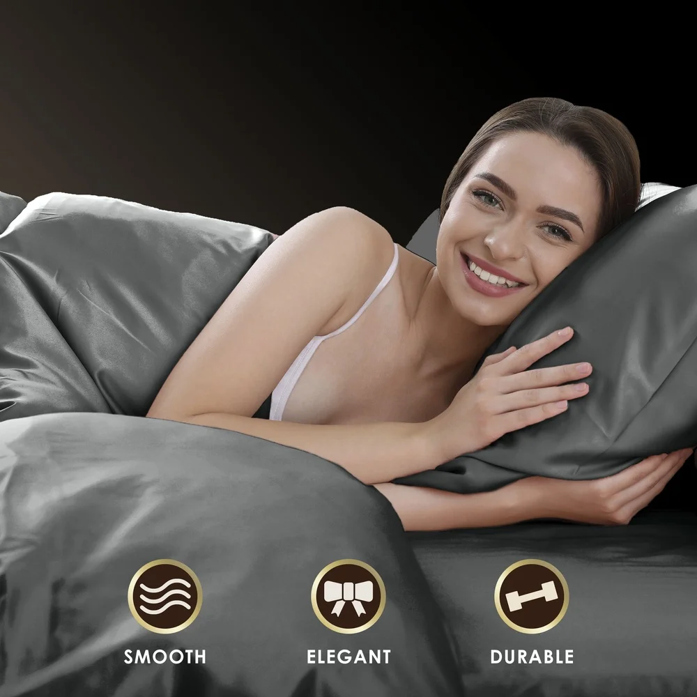 Luxury Satin Pillowcases Set of 2 Soft Breathable Hypoallergenic Hair Skin Comfortable King Size Bedding