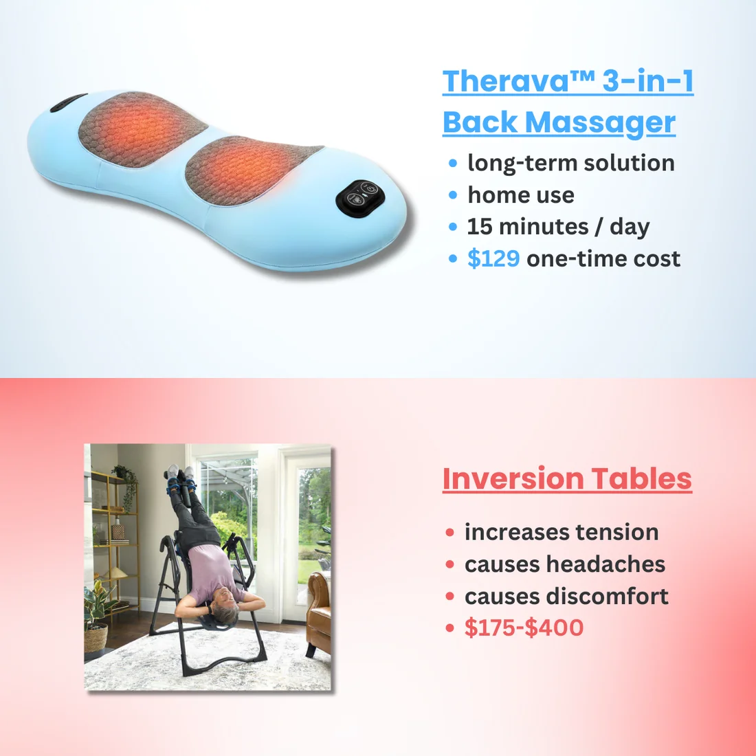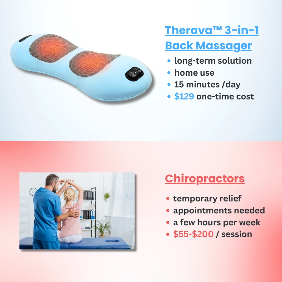 Following a typical therapy plan of 5-7 sessions, you'd spend around$2,500.That's 25 times more than what you'd pay for the Soothe BackMassager today-especially with our current sale.